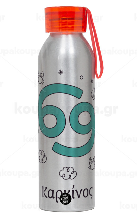 Ζώδια Καρκίνος, Aluminum Sports Bottle 650ml – Silver with Red Cap and Silicone Strap