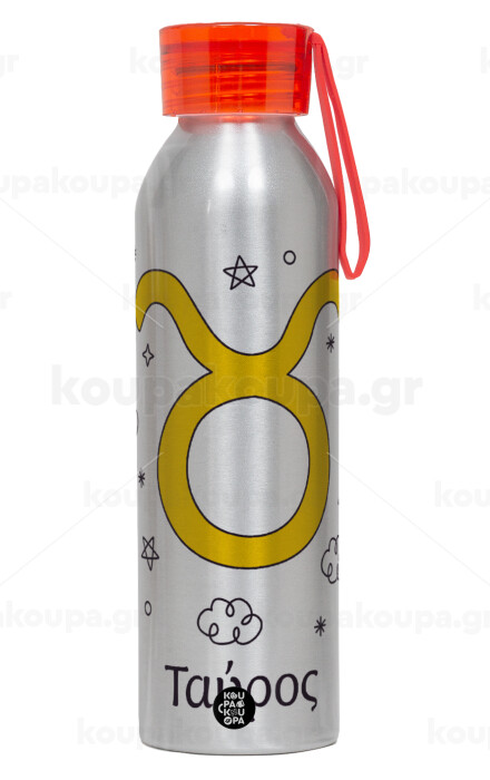 Ζώδια Ταύρος, Aluminum Sports Bottle 650ml – Silver with Red Cap and Silicone Strap