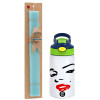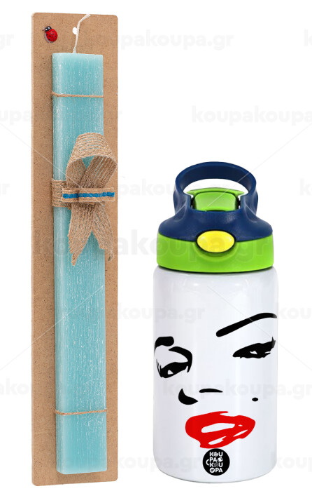 Marilyn Monroe, Easter Set, Children's thermal stainless steel bottle with safety straw, green/blue (350ml) & aromatic flat Easter candle (30cm) (TURQUOISE)