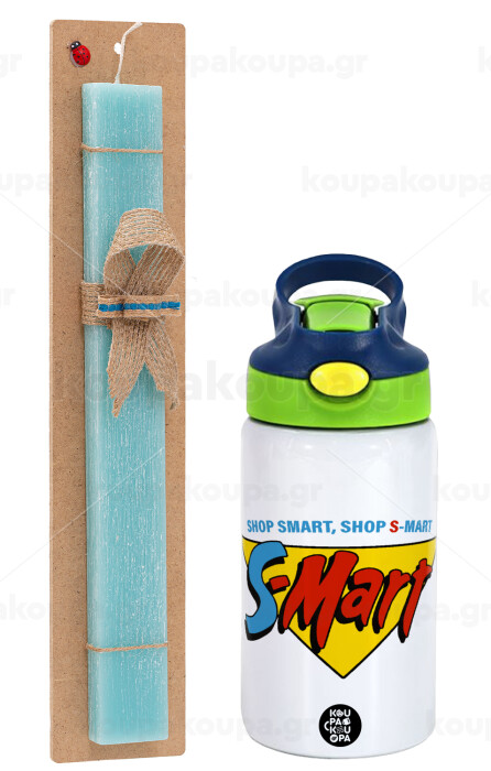 S-mart Evil Dead, Easter Set, Children's thermal stainless steel bottle with safety straw, green/blue (350ml) & aromatic flat Easter candle (30cm) (TURQUOISE)