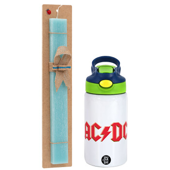 AC/DC, Easter Set, Children's thermal stainless steel bottle with safety straw, green/blue (350ml) & aromatic flat Easter candle (30cm) (TURQUOISE)