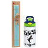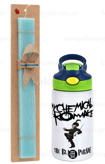 My Chemical Romance Black Parade, Easter Set, Children's thermal stainless steel bottle with safety straw, green/blue (350ml) & aromatic flat Easter candle (30cm) (TURQUOISE)