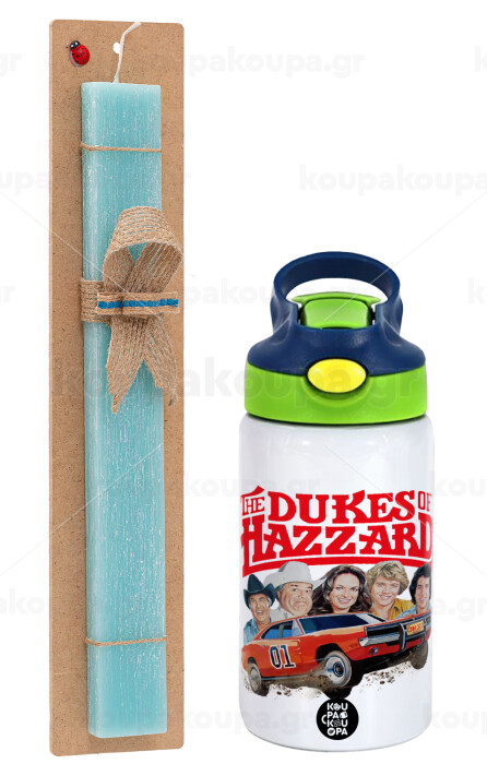 The Dukes of Hazzard, Easter Set, Children's thermal stainless steel bottle with safety straw, green/blue (350ml) & aromatic flat Easter candle (30cm) (TURQUOISE)