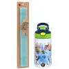 Erling Haaland, Easter Set, Children's thermal stainless steel bottle with safety straw, green/blue (350ml) & aromatic flat Easter candle (30cm) (TURQUOISE)