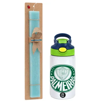Palmeiras, Easter Set, Children's thermal stainless steel bottle with safety straw, green/blue (350ml) & aromatic flat Easter candle (30cm) (TURQUOISE)