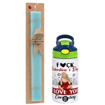 I love You Everyday , Easter Set, Children's thermal stainless steel bottle with safety straw, green/blue (350ml) & aromatic flat Easter candle (30cm) (TURQUOISE)
