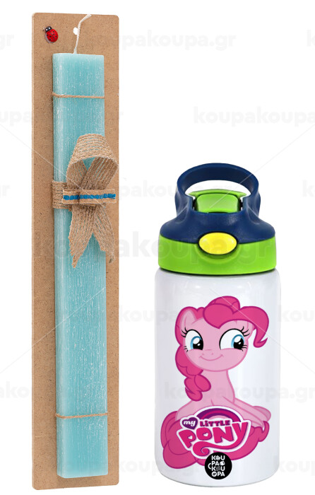 My Little Pony, Easter Set, Children's thermal stainless steel bottle with safety straw, green/blue (350ml) & aromatic flat Easter candle (30cm) (TURQUOISE)