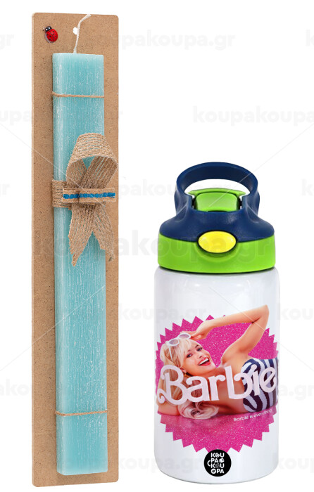 Barbie is everything, Easter Set, Children's thermal stainless steel bottle with safety straw, green/blue (350ml) & aromatic flat Easter candle (30cm) (TURQUOISE)