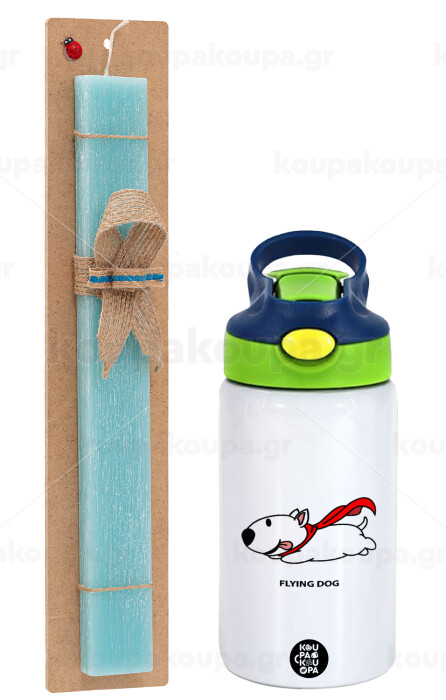 Flying DOG, Easter Set, Children's thermal stainless steel bottle with safety straw, green/blue (350ml) & aromatic flat Easter candle (30cm) (TURQUOISE)