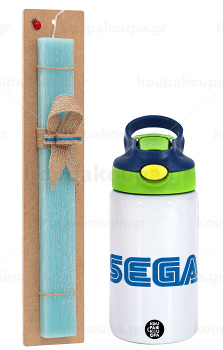 SEGA, Easter Set, Children's thermal stainless steel bottle with safety straw, green/blue (350ml) & aromatic flat Easter candle (30cm) (TURQUOISE)