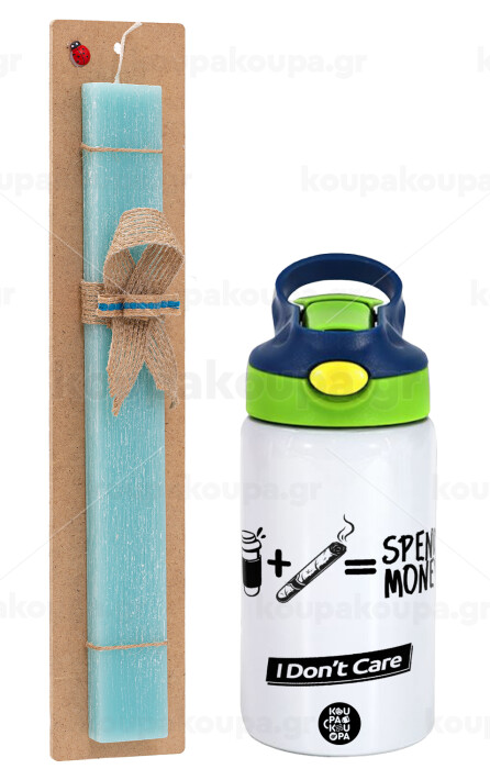 Spend Money, Easter Set, Children's thermal stainless steel bottle with safety straw, green/blue (350ml) & aromatic flat Easter candle (30cm) (TURQUOISE)
