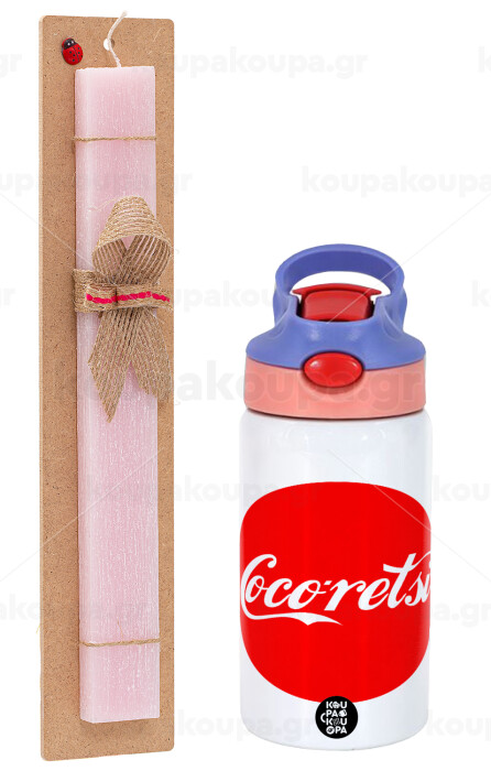 Cocoretsi, Easter Set, Children's thermal stainless steel water bottle with safety straw, pink/purple (350ml) & Easter scented flat candle (30cm) (PINK)
