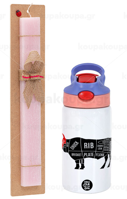 Diagrams for butcher shop, Easter Set, Children's thermal stainless steel water bottle with safety straw, pink/purple (350ml) & Easter scented flat candle (30cm) (PINK)