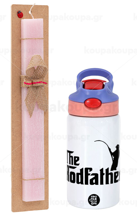 The rodfather, Easter Set, Children's thermal stainless steel water bottle with safety straw, pink/purple (350ml) & Easter scented flat candle (30cm) (PINK)