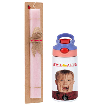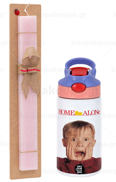 Μόνος στο σπίτι Kevin McCallister Shocked, Easter Set, Children's thermal stainless steel water bottle with safety straw, pink/purple (350ml) & Easter scented flat candle (30cm) (PINK)