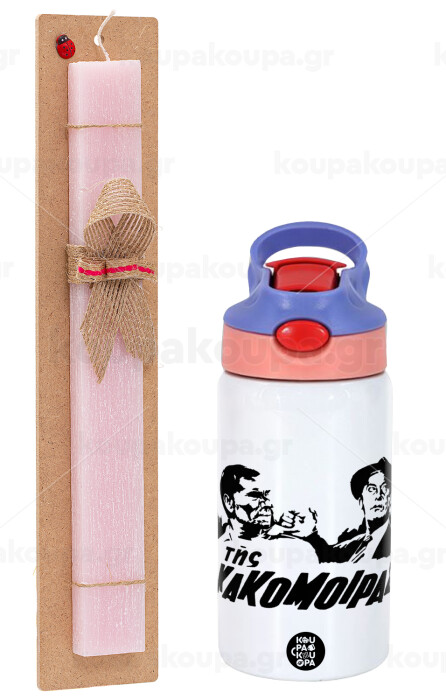 Tis kakomoiras, Easter Set, Children's thermal stainless steel water bottle with safety straw, pink/purple (350ml) & Easter scented flat candle (30cm) (PINK)
