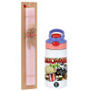 Movie night, Easter Set, Children's thermal stainless steel water bottle with safety straw, pink/purple (350ml) & Easter scented flat candle (30cm) (PINK)