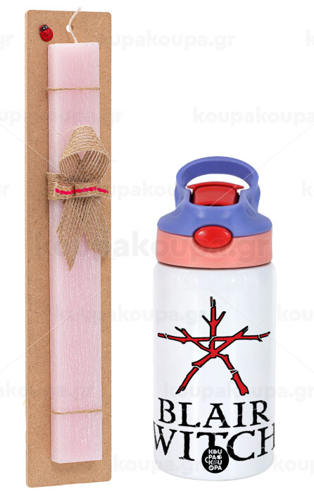 The Blair Witch Project , Easter Set, Children's thermal stainless steel water bottle with safety straw, pink/purple (350ml) & Easter scented flat candle (30cm) (PINK)