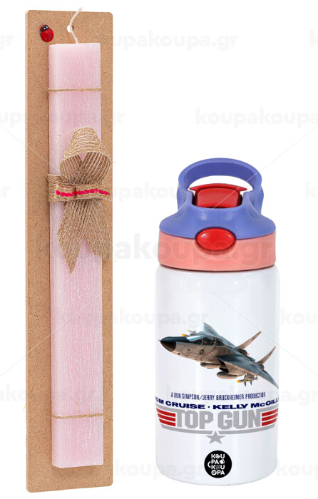 Top Gun, Easter Set, Children's thermal stainless steel water bottle with safety straw, pink/purple (350ml) & Easter scented flat candle (30cm) (PINK)