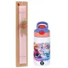 Elsa & Anna Princess, Easter Set, Children's thermal stainless steel water bottle with safety straw, pink/purple (350ml) & Easter scented flat candle (30cm) (PINK)
