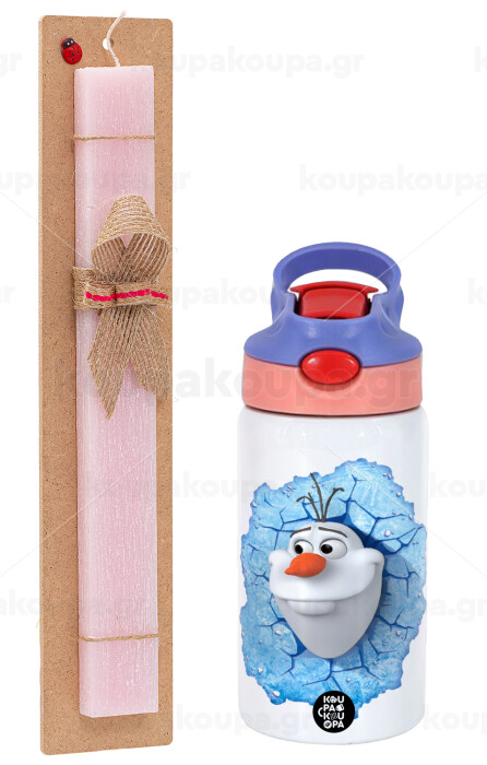 Frozen Olaf, Easter Set, Children's thermal stainless steel water bottle with safety straw, pink/purple (350ml) & Easter scented flat candle (30cm) (PINK)