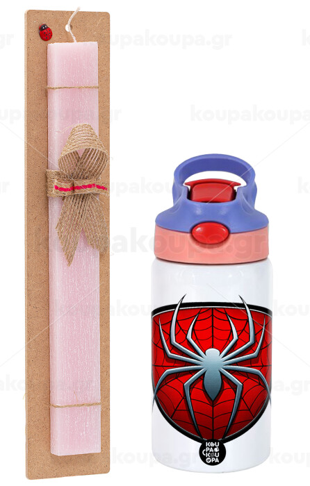 Spider-man, Easter Set, Children's thermal stainless steel water bottle with safety straw, pink/purple (350ml) & Easter scented flat candle (30cm) (PINK)