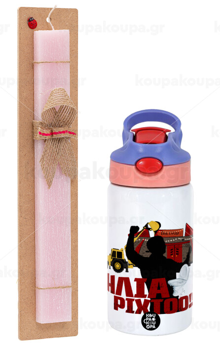 Ηλία ρίχτο!, Easter Set, Children's thermal stainless steel water bottle with safety straw, pink/purple (350ml) & Easter scented flat candle (30cm) (PINK)