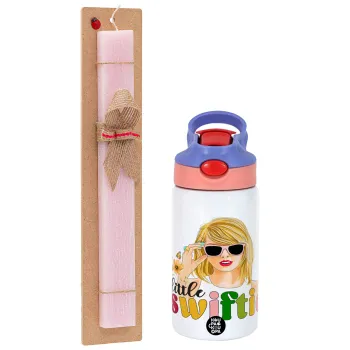 Little Swiftie, Easter Set, Children's thermal stainless steel water bottle with safety straw, pink/purple (350ml) & Easter scented flat candle (30cm) (PINK)