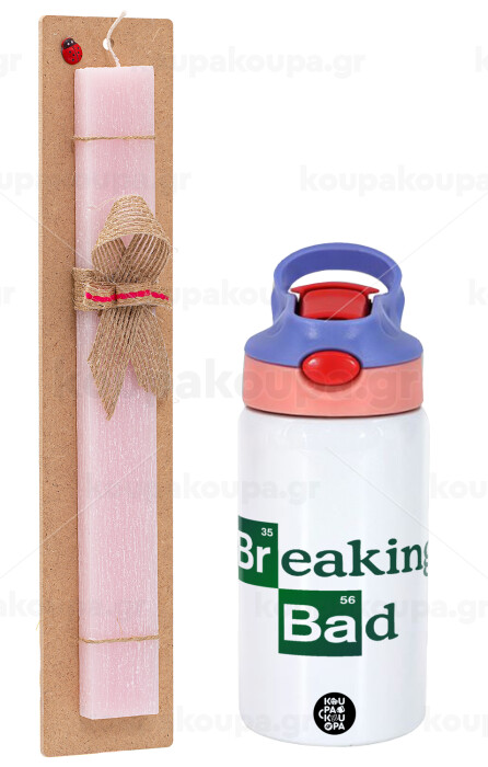 Breaking Bad, Easter Set, Children's thermal stainless steel water bottle with safety straw, pink/purple (350ml) & Easter scented flat candle (30cm) (PINK)