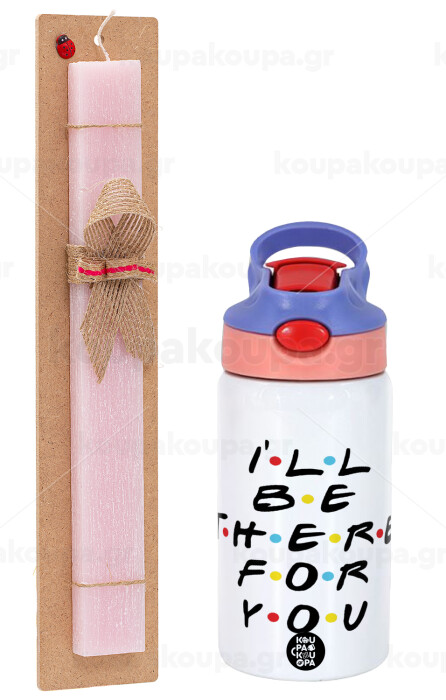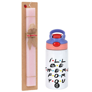 Friends i i'll be there for you, Easter Set, Children's thermal stainless steel water bottle with safety straw, pink/purple (350ml) & Easter scented flat candle (30cm) (PINK)