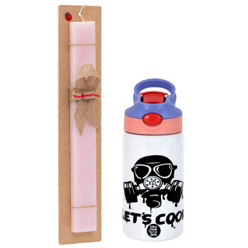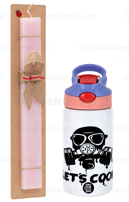 Let's cook mask, Easter Set, Children's thermal stainless steel water bottle with safety straw, pink/purple (350ml) & Easter scented flat candle (30cm) (PINK)