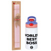 World's best boss, Easter Set, Children's thermal stainless steel water bottle with safety straw, pink/purple (350ml) & Easter scented flat candle (30cm) (PINK)