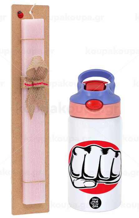 Punch, Easter Set, Children's thermal stainless steel water bottle with safety straw, pink/purple (350ml) & Easter scented flat candle (30cm) (PINK)