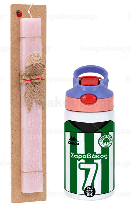 Παναθηναϊκός εμφάνιση, Easter Set, Children's thermal stainless steel water bottle with safety straw, pink/purple (350ml) & Easter scented flat candle (30cm) (PINK)