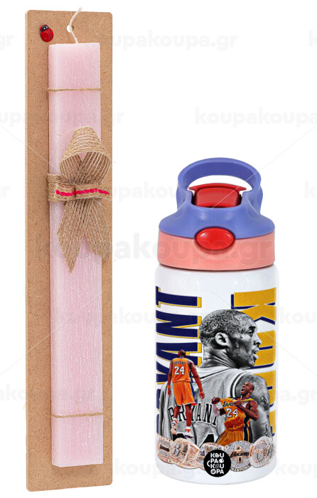 Kobe Bryant, Easter Set, Children's thermal stainless steel water bottle with safety straw, pink/purple (350ml) & Easter scented flat candle (30cm) (PINK)