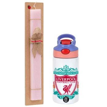 Liverpool, Easter Set, Children's thermal stainless steel water bottle with safety straw, pink/purple (350ml) & Easter scented flat candle (30cm) (PINK)
