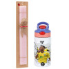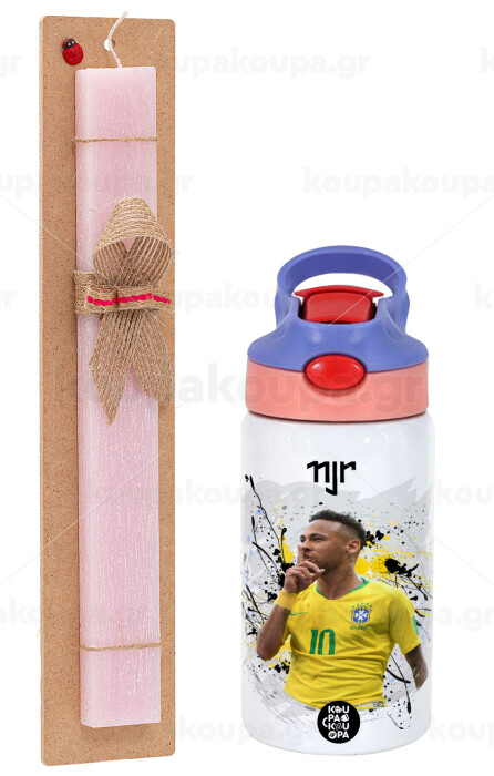 Neymar JR, Easter Set, Children's thermal stainless steel water bottle with safety straw, pink/purple (350ml) & Easter scented flat candle (30cm) (PINK)