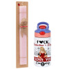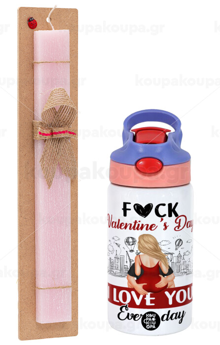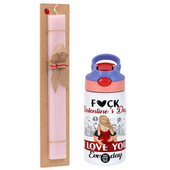 I love You Everyday , Easter Set, Children's thermal stainless steel water bottle with safety straw, pink/purple (350ml) & Easter scented flat candle (30cm) (PINK)