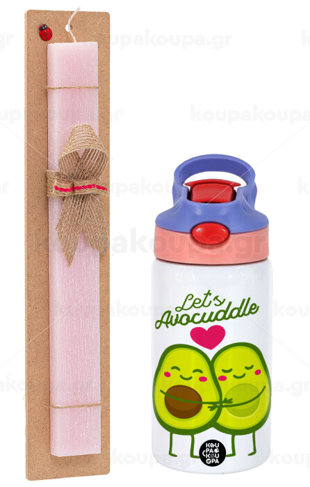Let's avocuddle, Easter Set, Children's thermal stainless steel water bottle with safety straw, pink/purple (350ml) & Easter scented flat candle (30cm) (PINK)