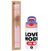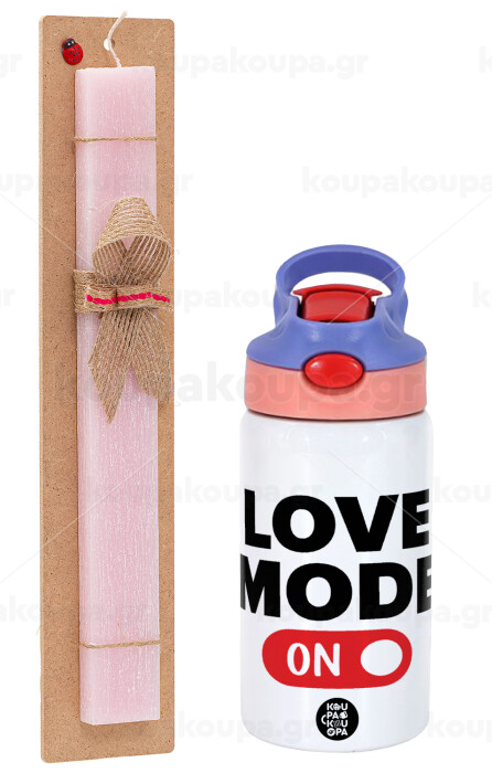 LOVE MODE ON, Easter Set, Children's thermal stainless steel water bottle with safety straw, pink/purple (350ml) & Easter scented flat candle (30cm) (PINK)