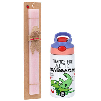 Thanks for all the ROARGASMS, Easter Set, Children's thermal stainless steel water bottle with safety straw, pink/purple (350ml) & Easter scented flat candle (30cm) (PINK)