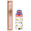Car construction, Easter Set, Children's thermal stainless steel water bottle with safety straw, pink/purple (350ml) & Easter scented flat candle (30cm) (PINK)