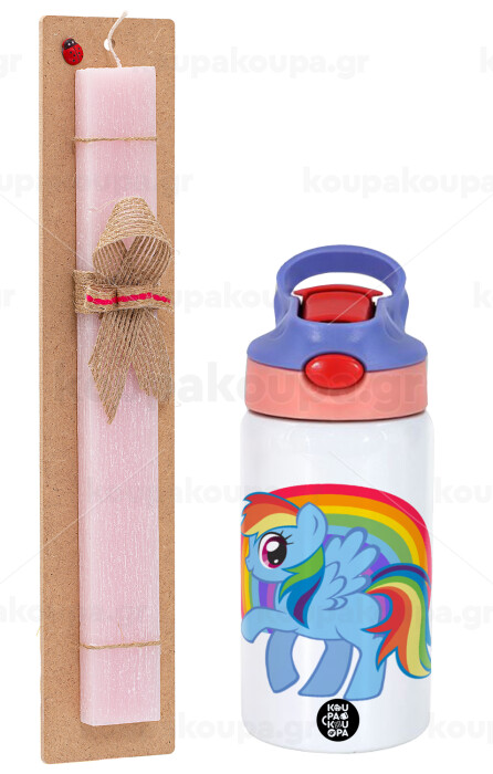 My Little Pony, Easter Set, Children's thermal stainless steel water bottle with safety straw, pink/purple (350ml) & Easter scented flat candle (30cm) (PINK)