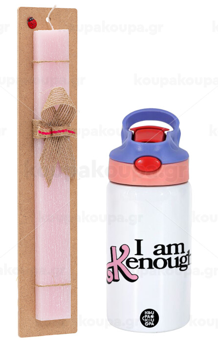 Barbie, i am Kenough, Easter Set, Children's thermal stainless steel water bottle with safety straw, pink/purple (350ml) & Easter scented flat candle (30cm) (PINK)