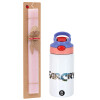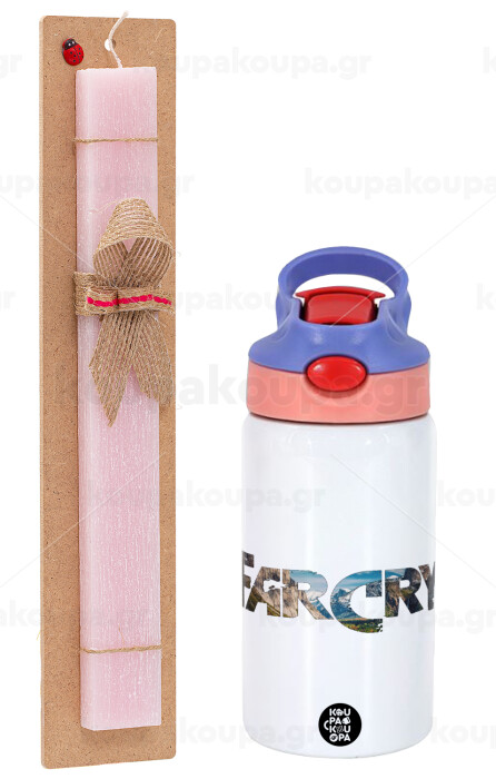 Farcry, Easter Set, Children's thermal stainless steel water bottle with safety straw, pink/purple (350ml) & Easter scented flat candle (30cm) (PINK)