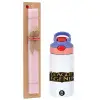 League of Legends LoL, Easter Set, Children's thermal stainless steel water bottle with safety straw, pink/purple (350ml) & Easter scented flat candle (30cm) (PINK)