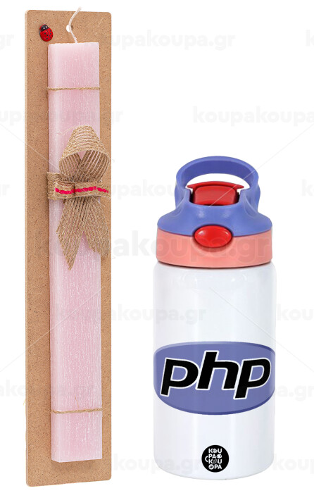 PHP, Easter Set, Children's thermal stainless steel water bottle with safety straw, pink/purple (350ml) & Easter scented flat candle (30cm) (PINK)