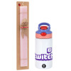 Twitch, Easter Set, Children's thermal stainless steel water bottle with safety straw, pink/purple (350ml) & Easter scented flat candle (30cm) (PINK)