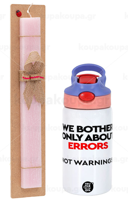 We bother only about errors, not warnings, Easter Set, Children's thermal stainless steel water bottle with safety straw, pink/purple (350ml) & Easter scented flat candle (30cm) (PINK)