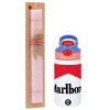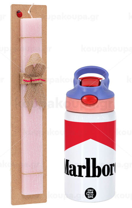Marlboro, Easter Set, Children's thermal stainless steel water bottle with safety straw, pink/purple (350ml) & Easter scented flat candle (30cm) (PINK)